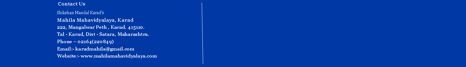 Phone: (02164) 220849 Email: karadmahila@gmail.com
